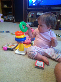Stacking her rings-she would start clapping after she put on each one