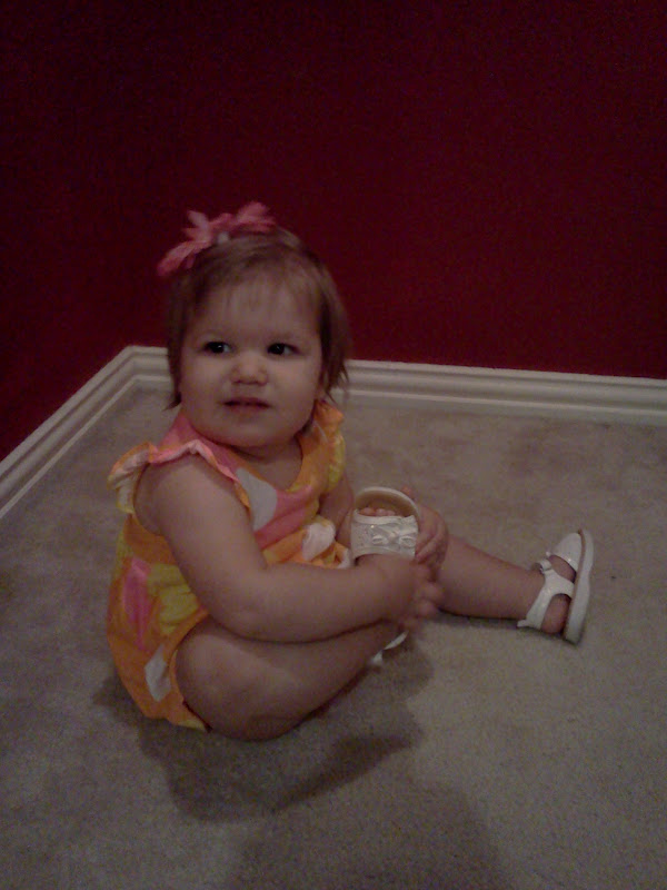 We went to the doctor for her 15 month appointment later in the week. She now weighs 26 pounds, 6 ounces, and is almost 32 inches. He said that is 90% in both areas. These are my attempts to get a picture of her before the doctor. Yeah right!